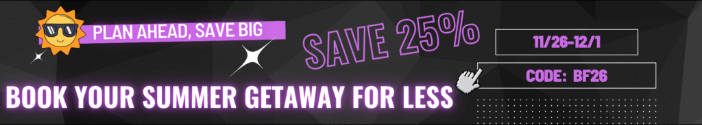 Save on select dates at the Indiana Beach Hotel, Parkside Lodging, Lakeside Cabins, and Tent & RV sites.